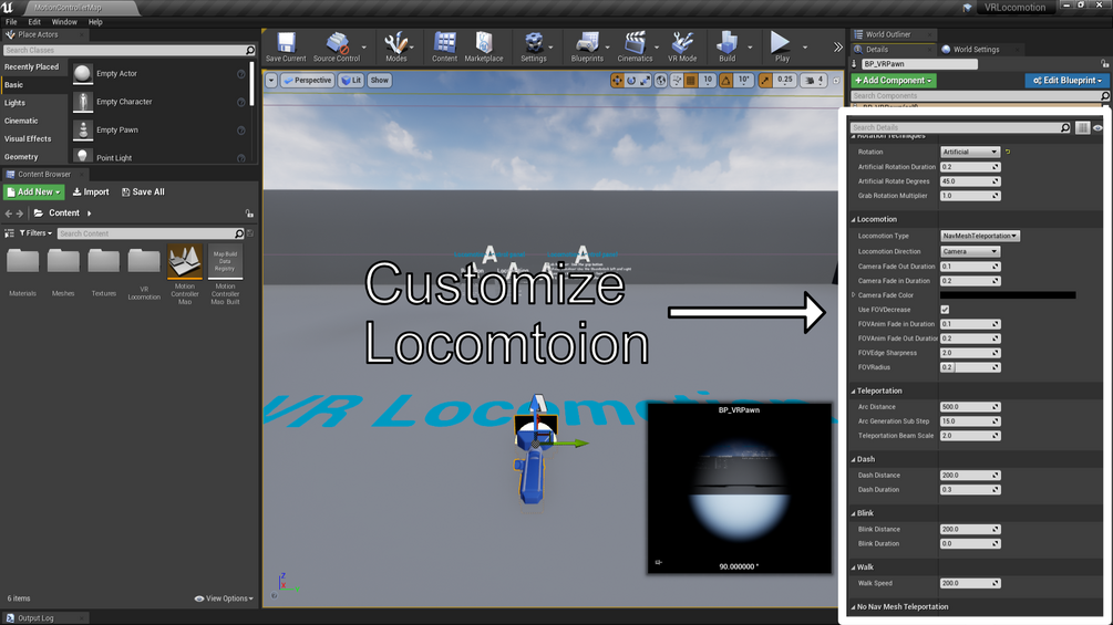 This little project contains a good template for a VR Pawn with various locomotion solutions. You will find: